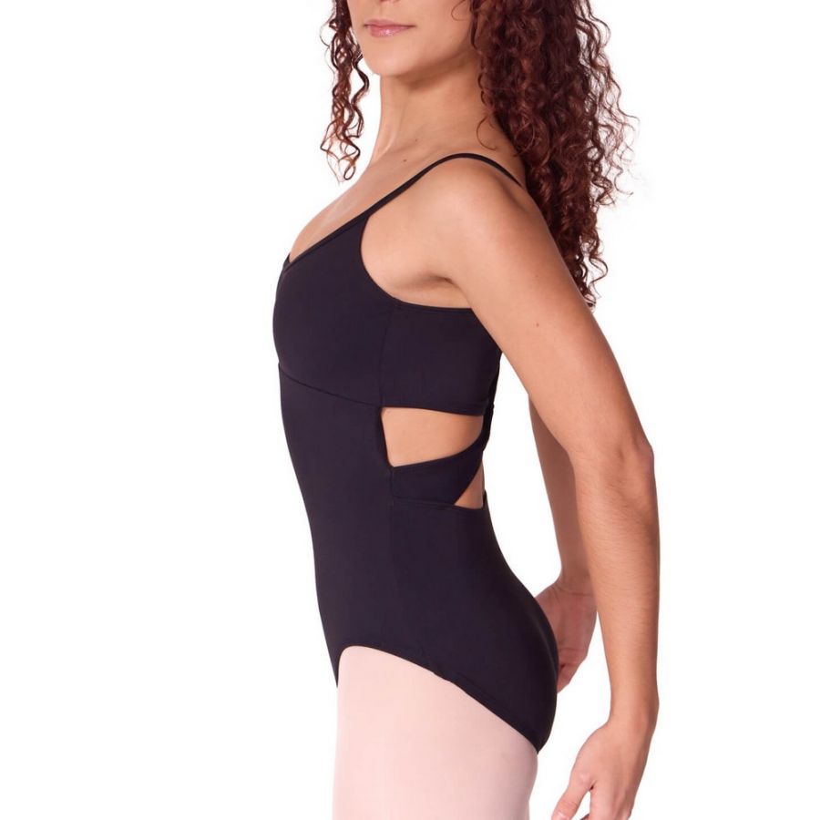 Klasyczne body baletowe, wyróżniające się ciekawą linią pleców, ze skrzyżowaniami na plecach. Materiał idealnie dopasowuje się do figury. Podwójny materiał na biuscie.