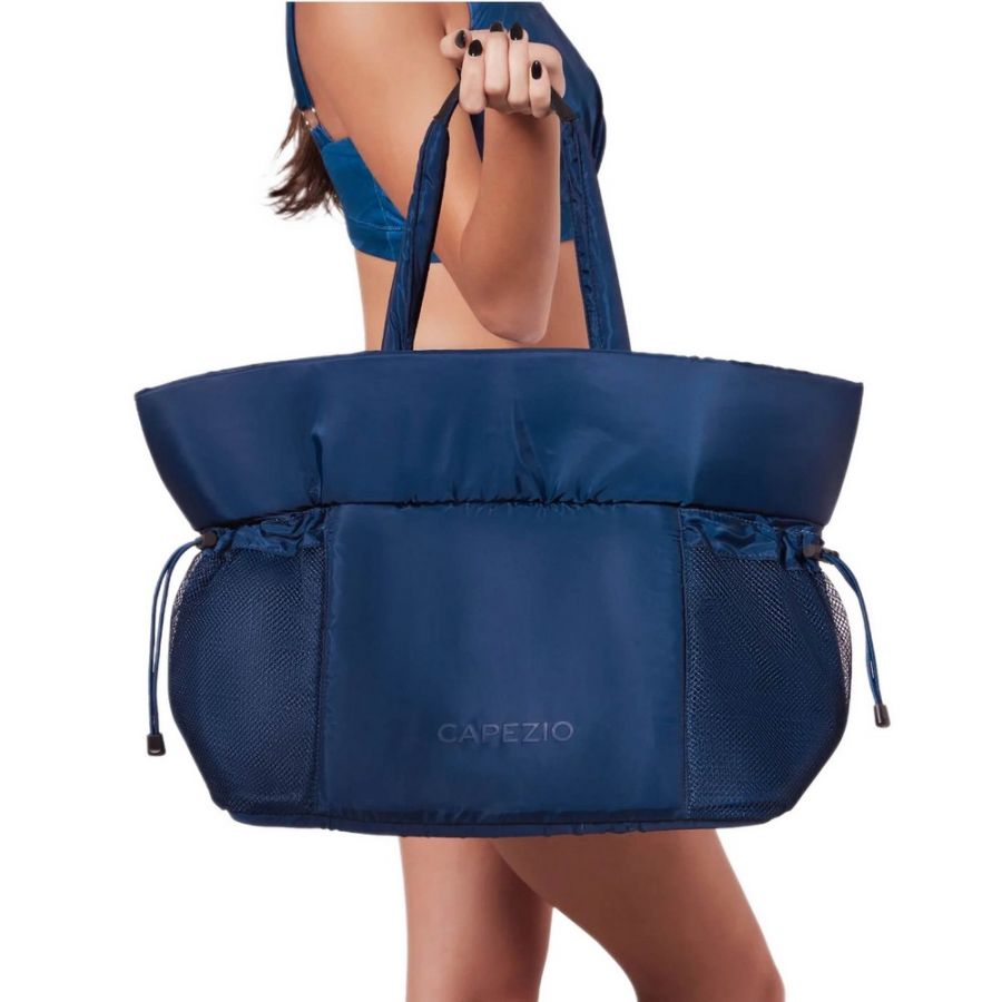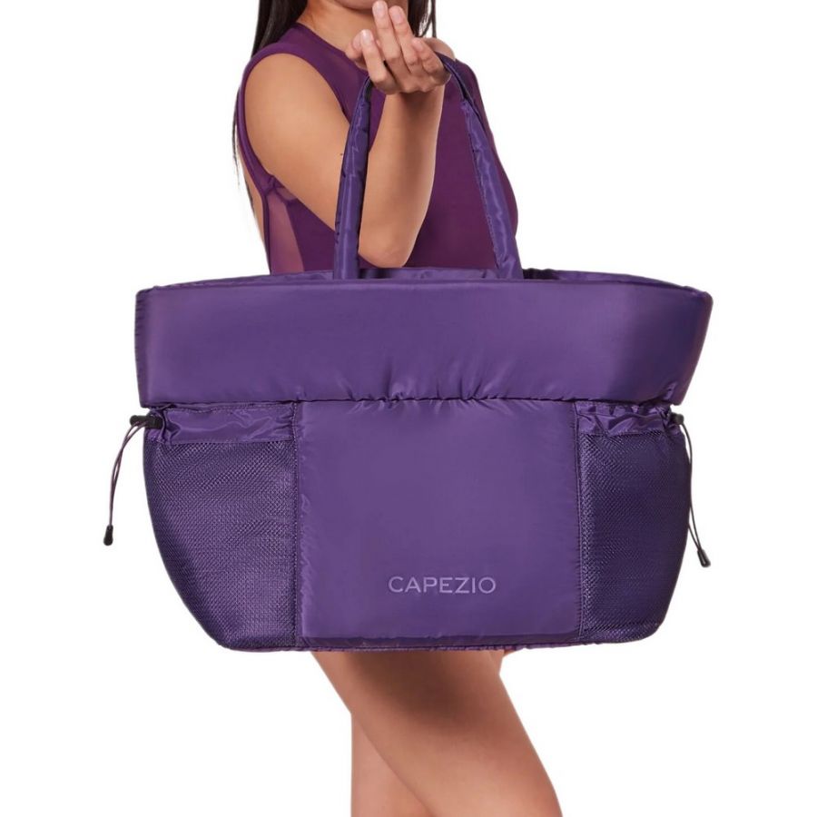 Wykonana jest z wysokiej jakosci poliestru, który zapewnia wygodę noszenia i trwałość. Posiada górną klapkę, którą można złożyć lub rozłożyć, zabezpieczoną zatrzaskiem. Torba posiada dwie regulowane zewnętrzne kieszenie z siatki ze sznurkami, idealne do przechowywania butelek z wodą lub innych niezbędnych przedmiotów. Dzięki antypoślizgowym paskom na ramię jest bardzo wygodna w noszeniu. Wewnątrz znajduje się specjalna komora na brudne ubrania, a także jedna kieszeń zapinana na zamek błyskawiczny i dwie otwarte kieszenie, które pozwalają jeszcze lepiej zorganizować jej zawartość. Torba ma z przodu logo Capezio w tym samym kolorze.Jest to doskonały wybór na zajęcia taneczne, wycieczki na siłownię lub codzienne zakupy.